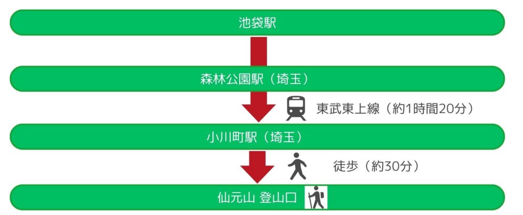 - 小川町駅から歩いて登山口まで移動(約30分)