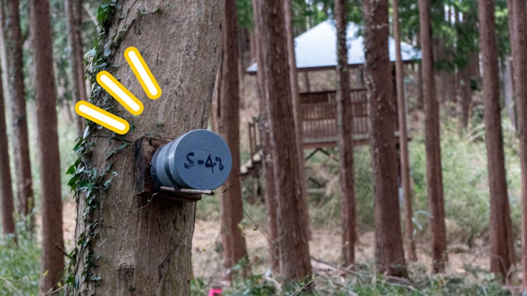 あと、仙元山を実際に歩いていただければわかるのですが、樹木の幹に何かの装置が括りつけられているのが非常に気になりましたね…。