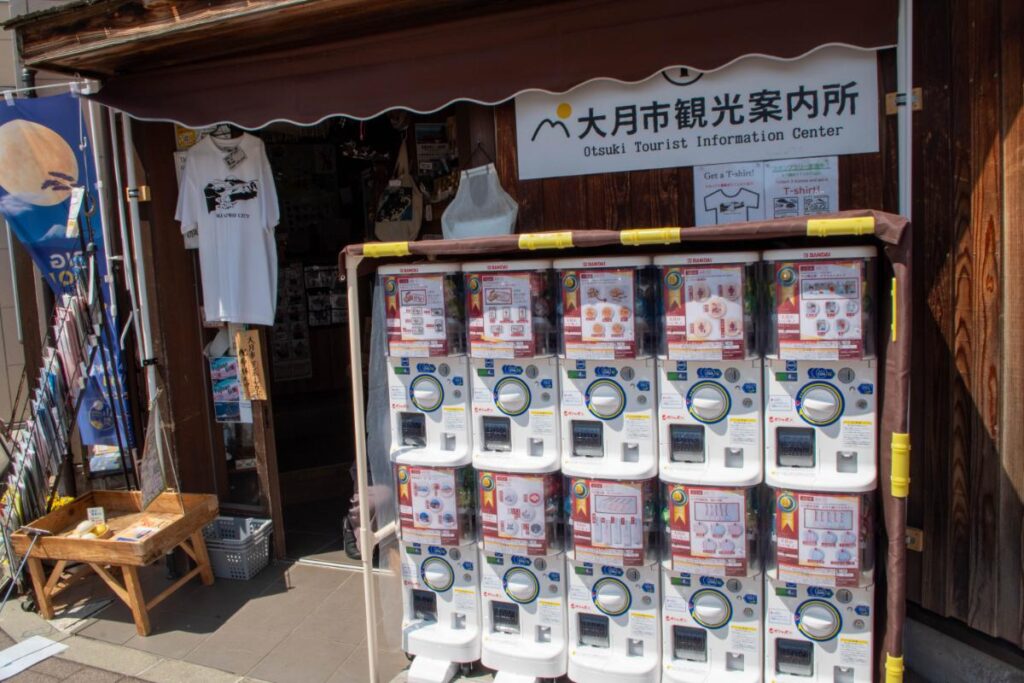 次いで大月駅前の観光案内所となります。各種登山バッチなんかはこちらで購入できるのですが、残念ながら今回のお伊勢山のバッチは販売されていないようです…。