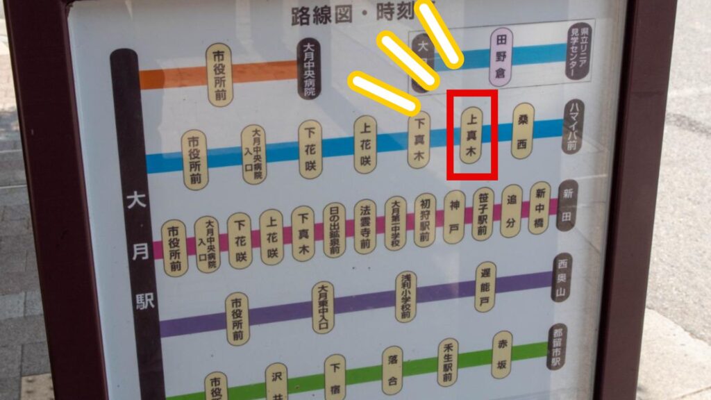 - 大月駅前から富士急バスのハマイバ前行きに乗車(約26分)