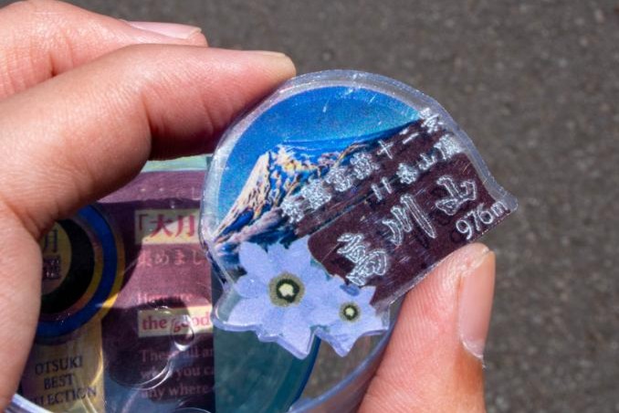 正直、いつも買い求めている金属製のバッチと比べると重量感が無くて安っぽく感じてしまうのですが、キレイな写真が背景に使われており、飾っておく分にはコチラの方がお洒落な気がしています。