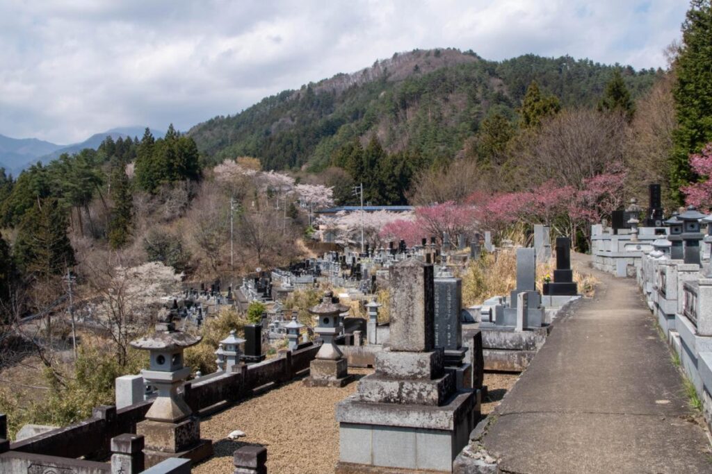 ちなみに山頂の裏手は共同墓地となっています。