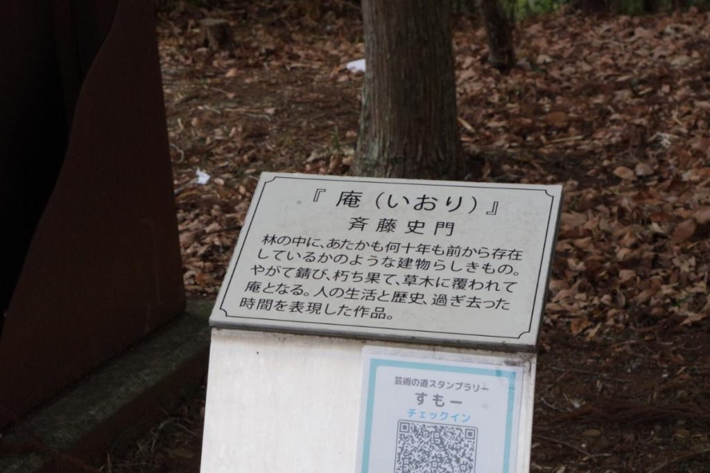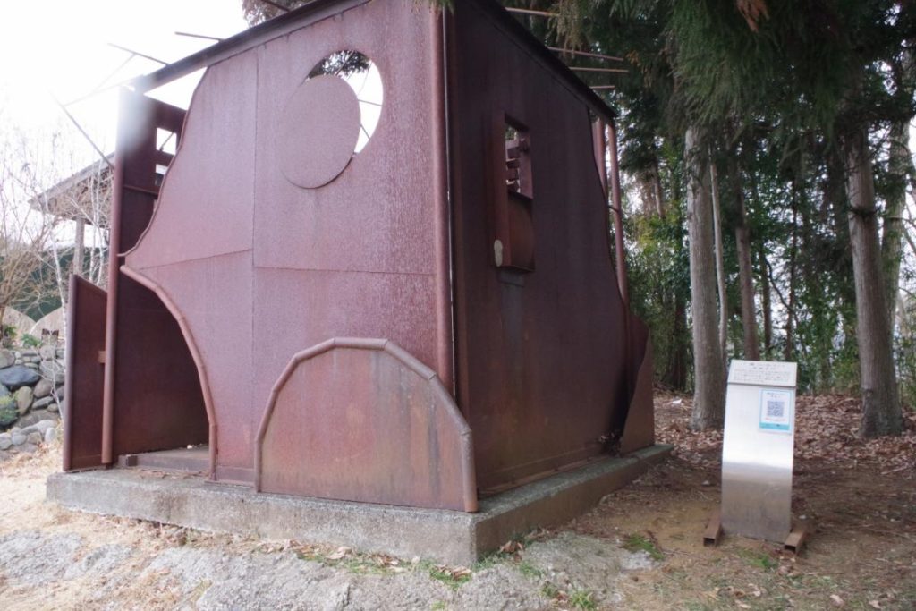➀『庵』については山の目の眺望ポイントのすぐ近くに展示してあります。中も覗けるのですが、正直、手入れがされている気配は無く、ボロボロでした…。