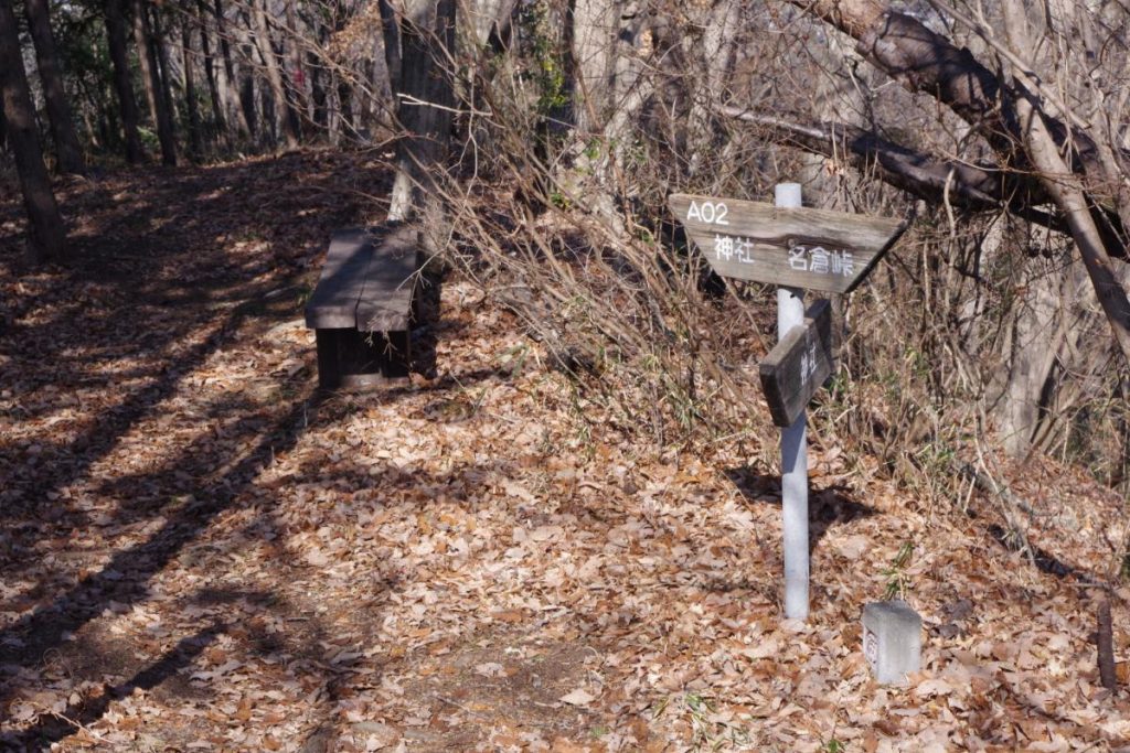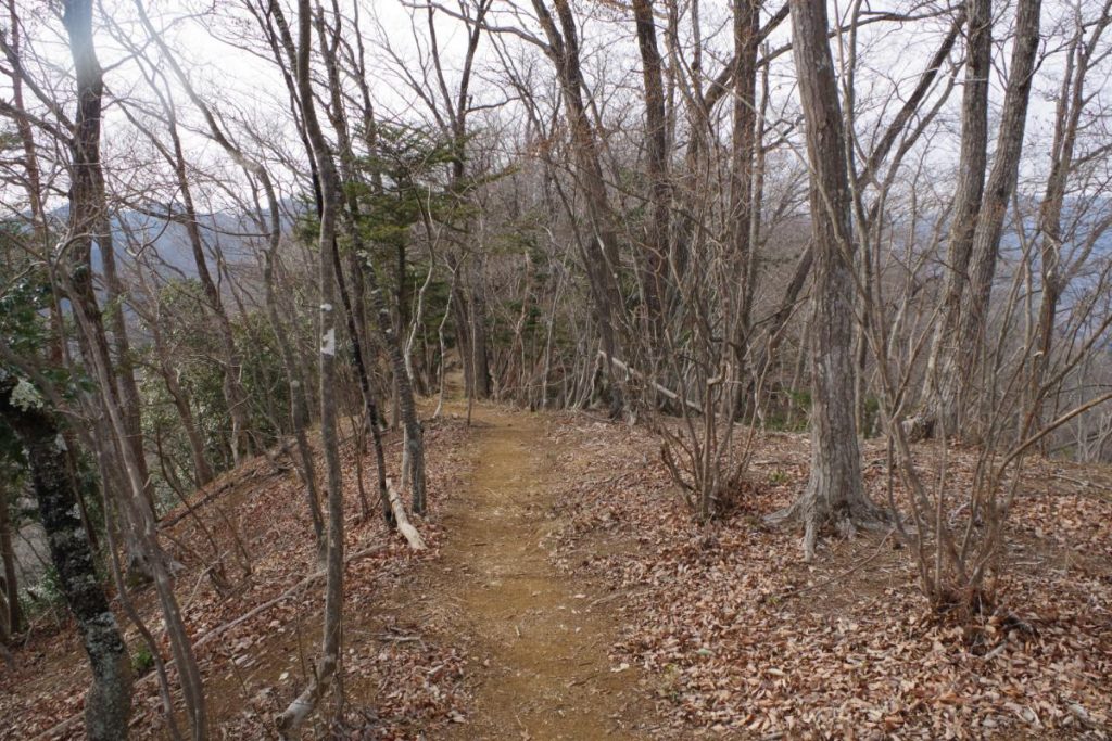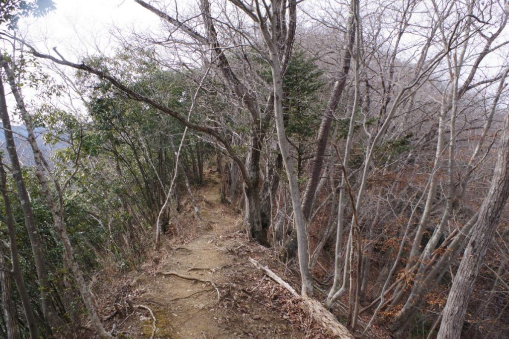 名倉峠までは痩せ尾根を通って約20分ほど歩くこととなりますが、登山道は明瞭で案内板もあります。