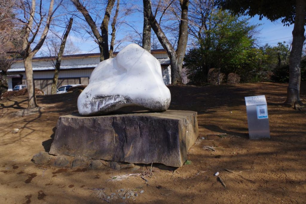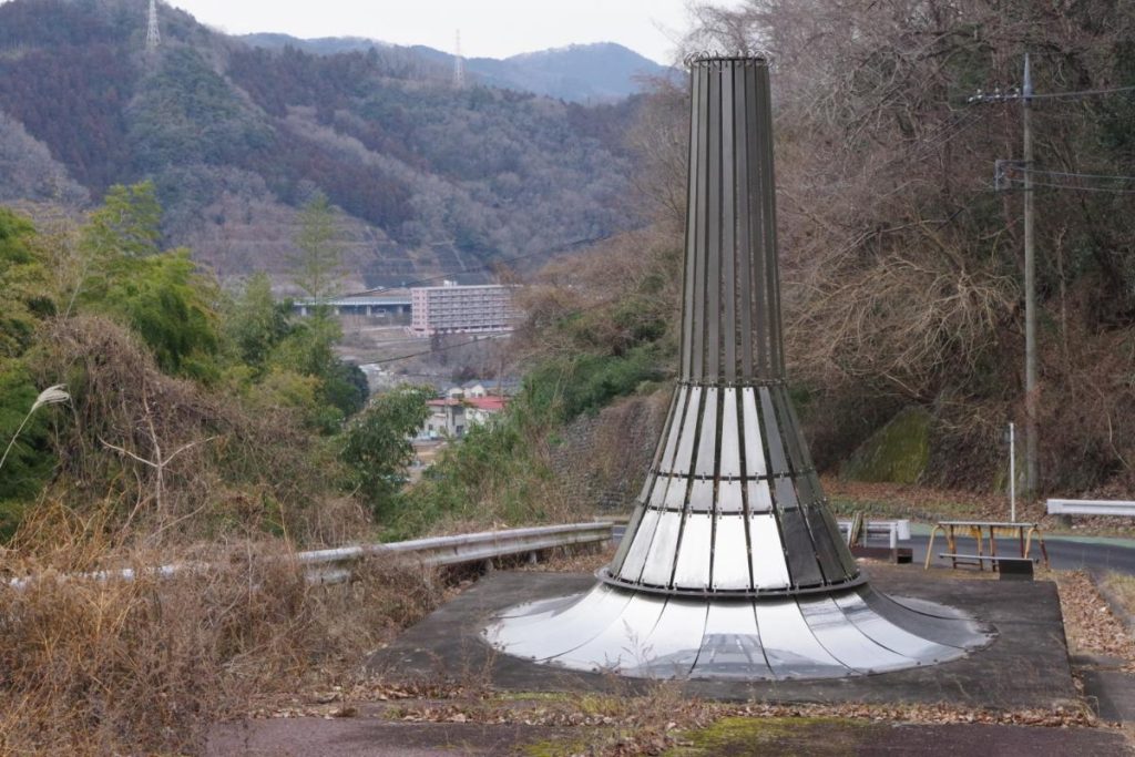 この奇抜なモニュメントの正体は、旧藤野町時代の「ふるさと芸術村構想」の折、30以上設置された野外環境アート作品の一つとなっています。