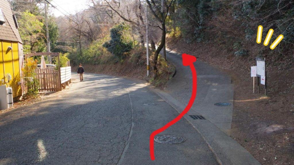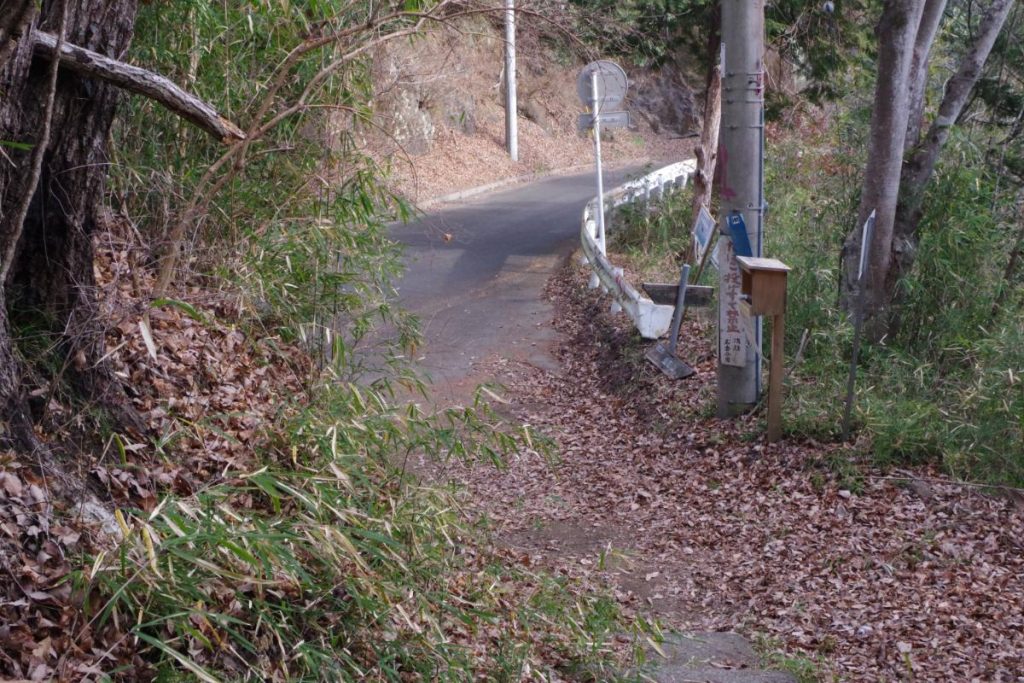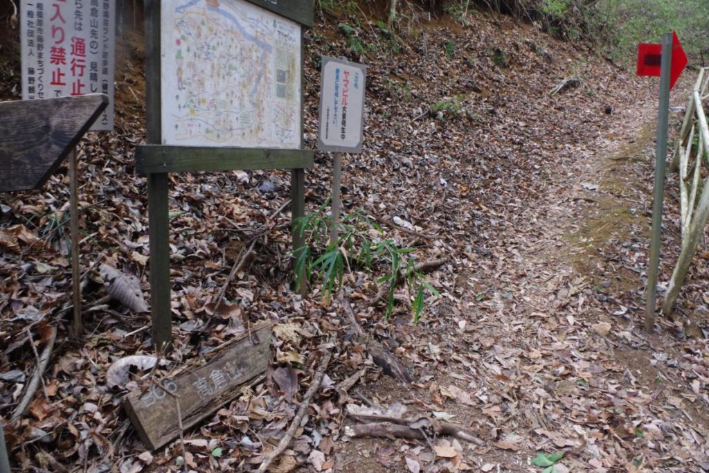 車道から藤野駅方面へと進んでいくと高倉山への登山道が見つかります。