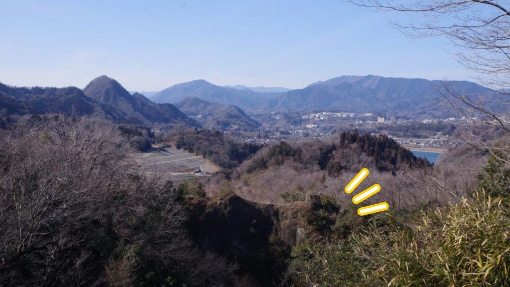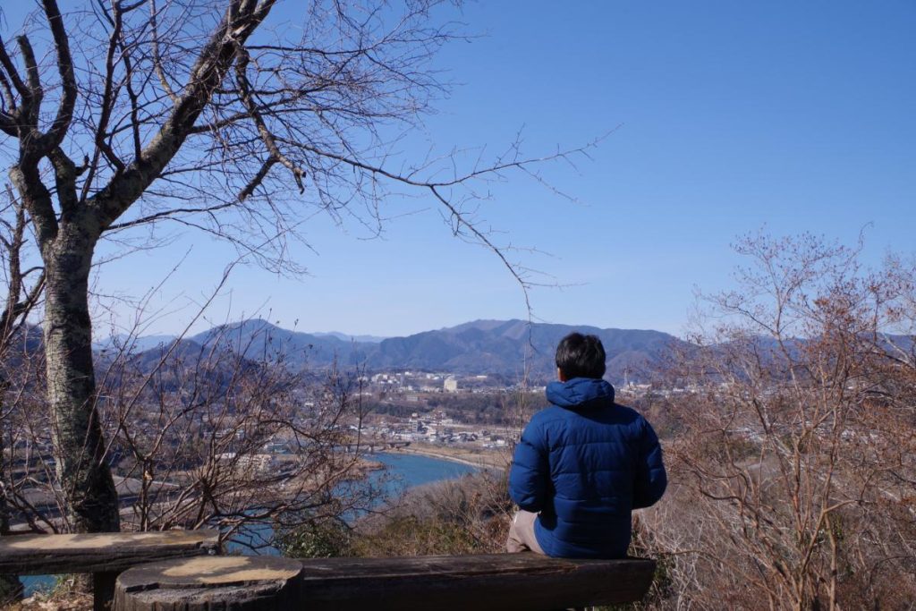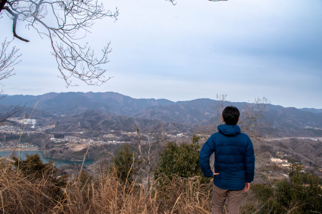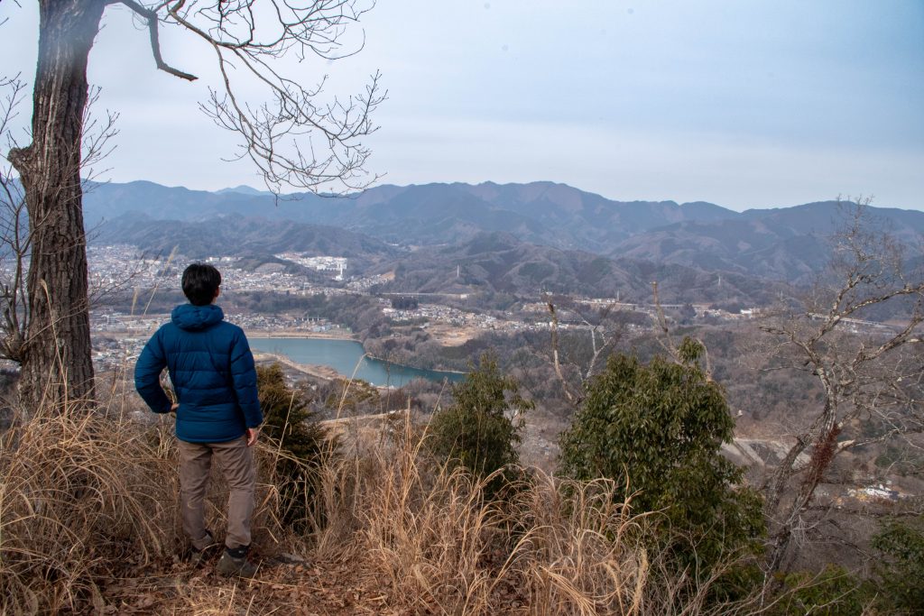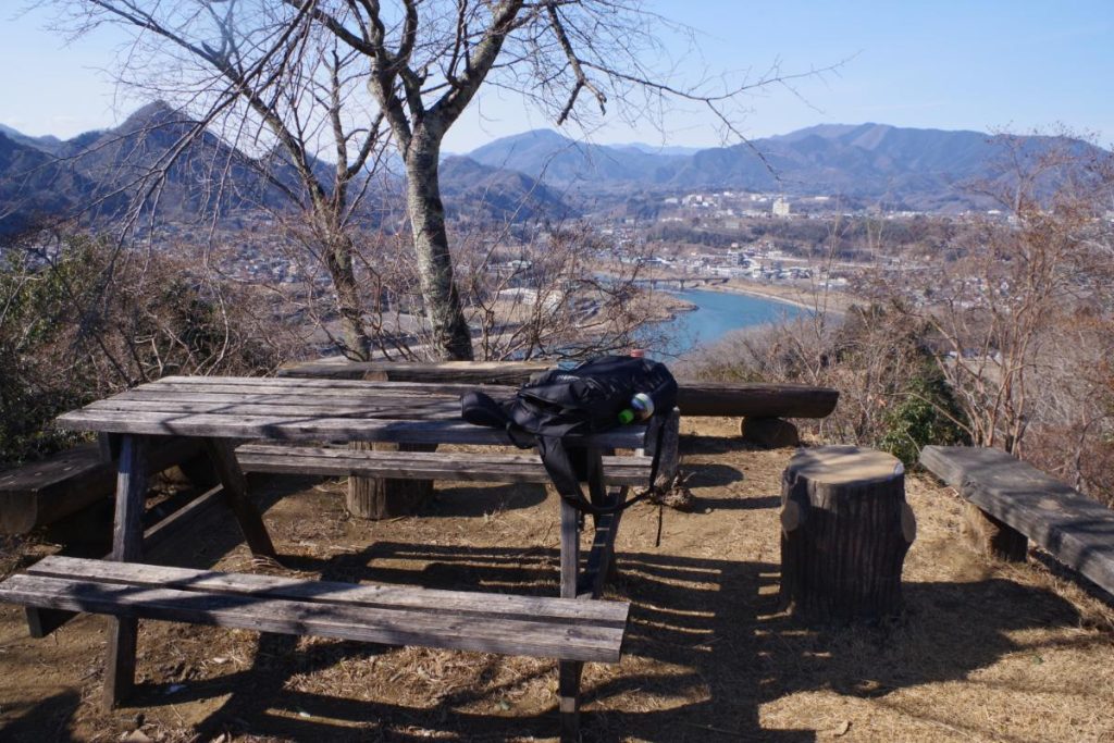 山頂からは上野原市方面の展望が素晴らしく、秋山川の濃いブルーも良いアクセントになっています。