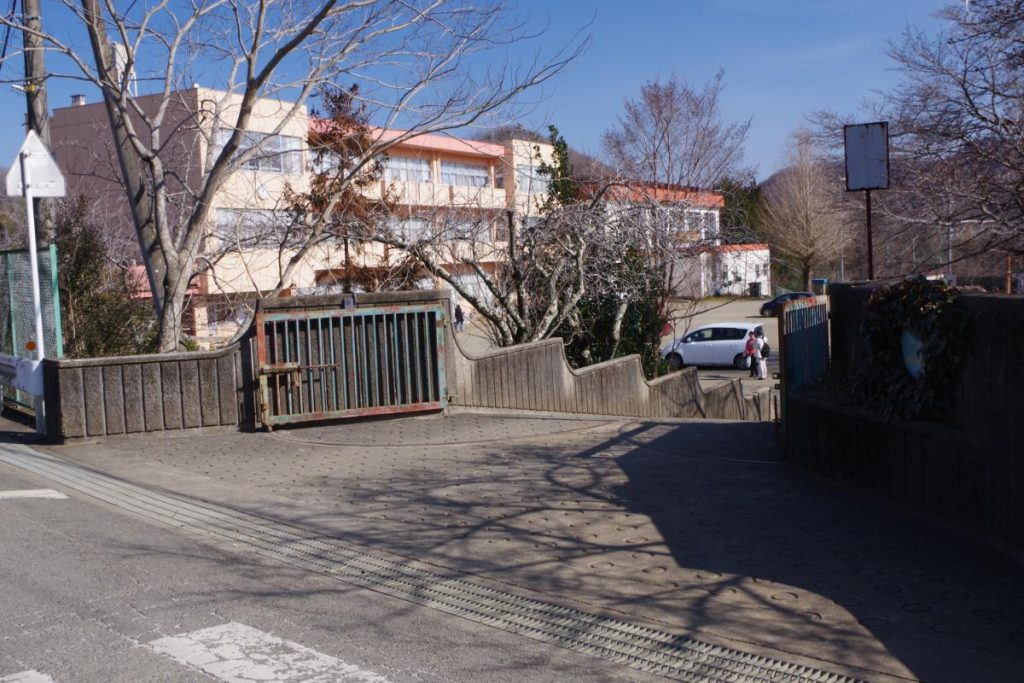 ⑥学校法人シュタイナー学園が見えてくると目的地はすぐそこです。左手前方の高倉山の中腹に注目しましょう!