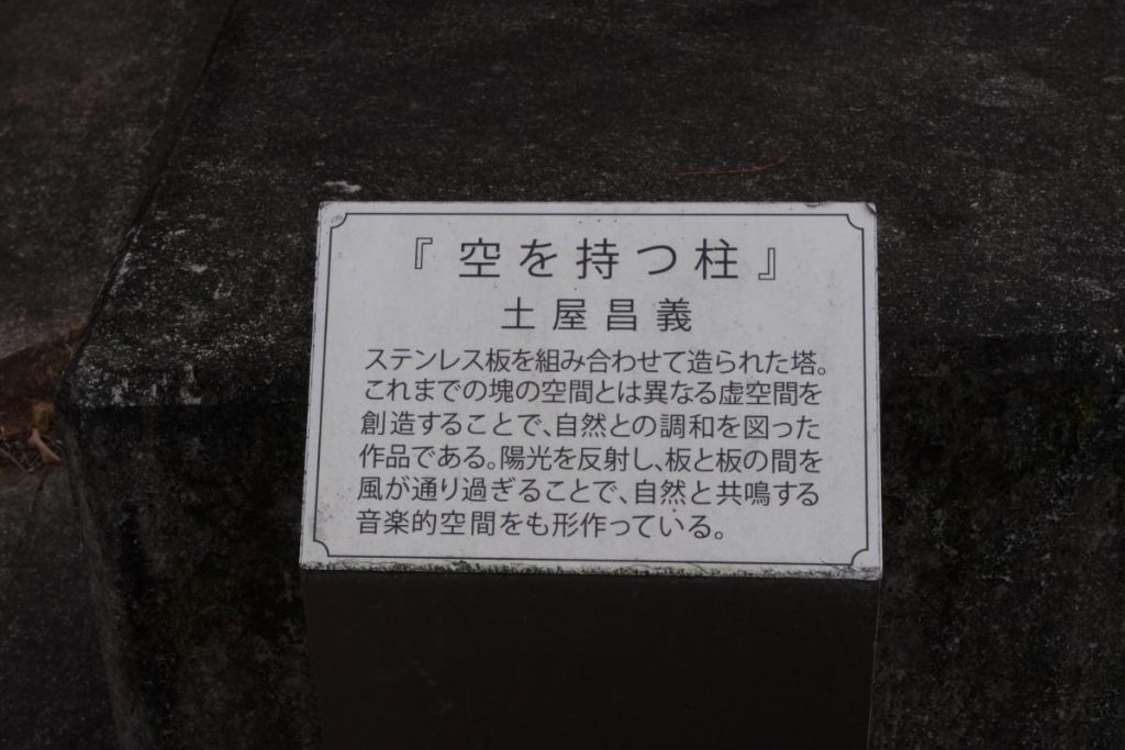 ⑤『空を持つ柱』は芽輪から少し下った先の峠道に展示されています。『これまでの塊の空間とは異なる虚空間を想像することで…(以下後略)』…難解過ぎて、何が何やらわかりません…。