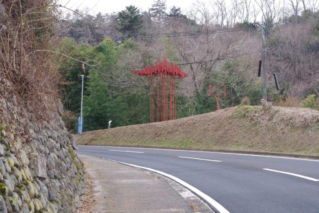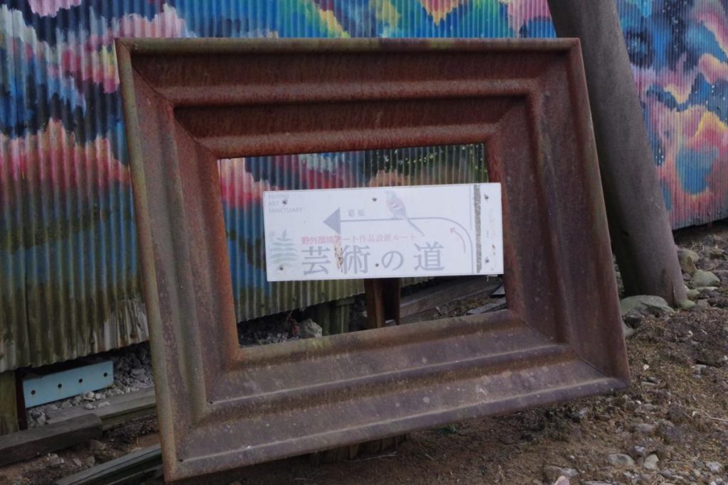 ⑤芸術の道に入ると、いくつかの野外環境アートを通り過ぎ、峠道を30分ほど歩きます。