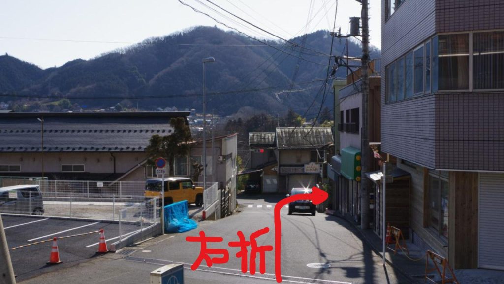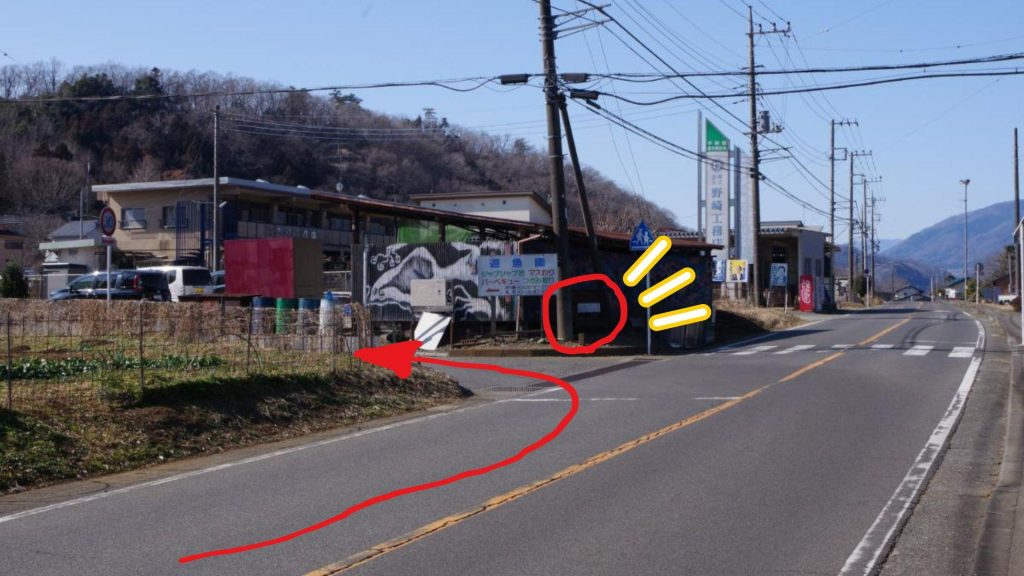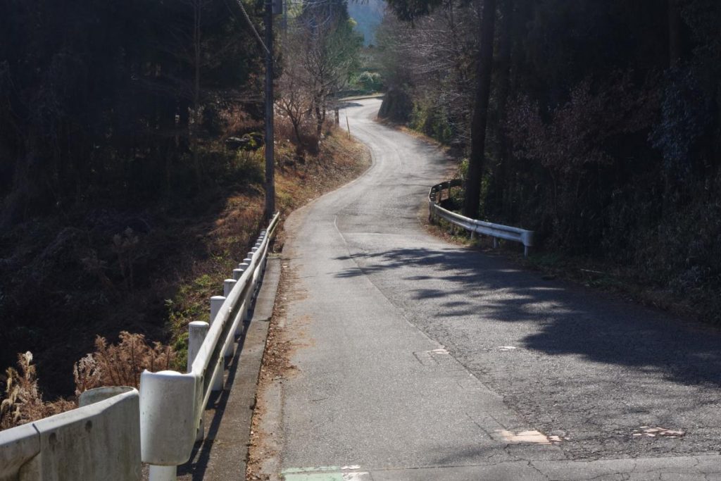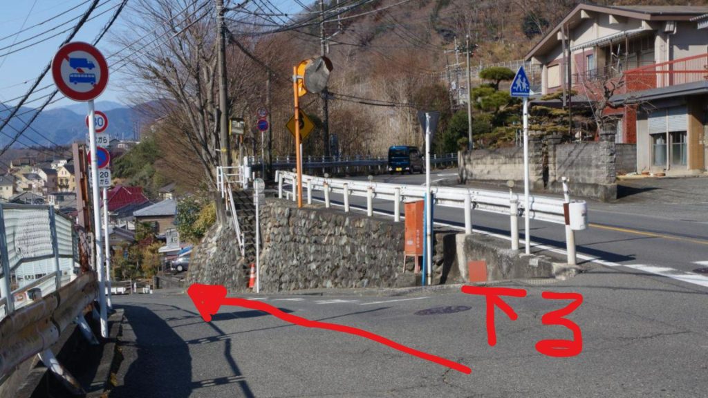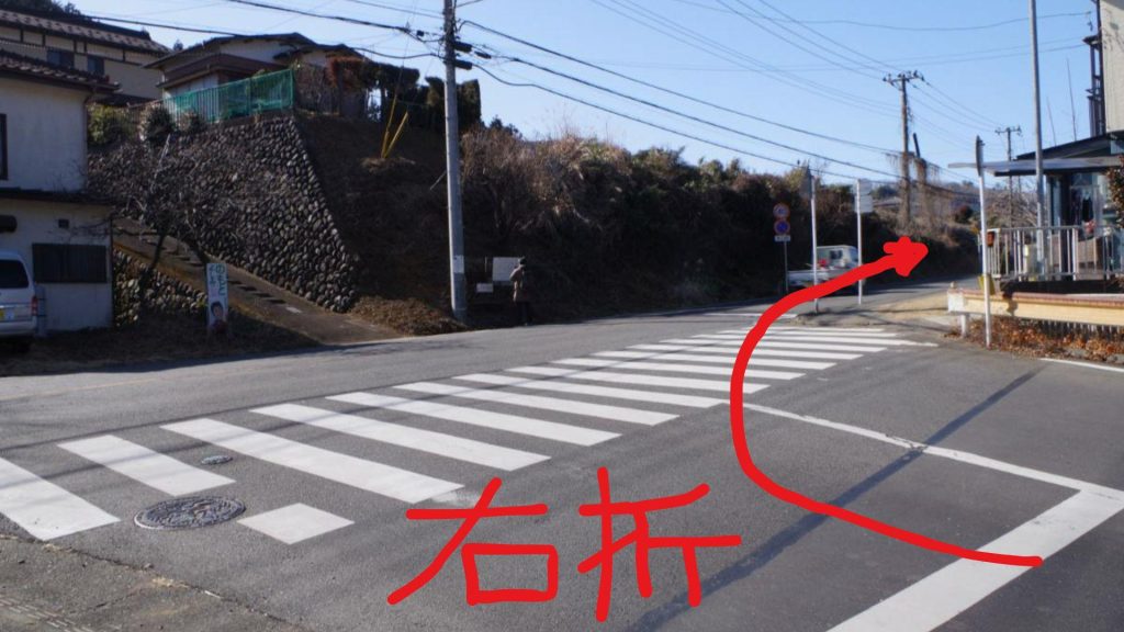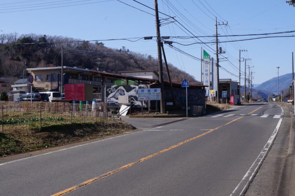 橋を渡り、坂道を登っていくと三叉路に行き当たりますが、コチラは右手の上野原市方面へと進んでいきましょう。
