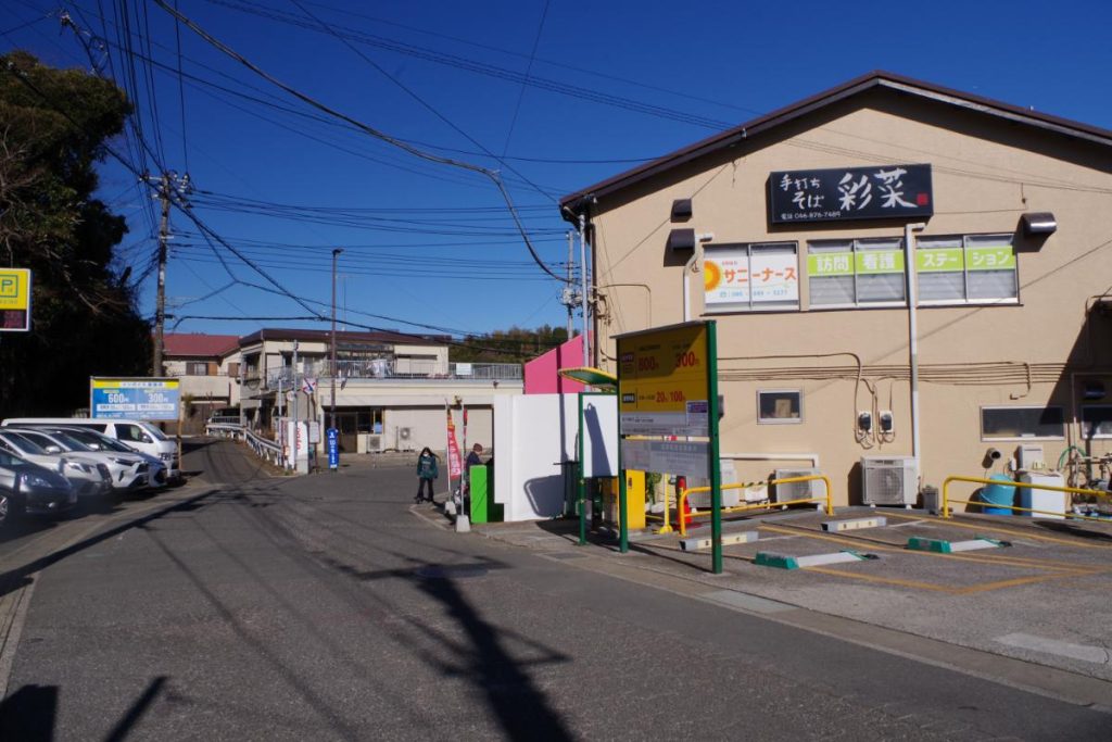 ➀津久井浜駅の改札を抜けたら、駅前を左手へと進んでいきましょう。彩葉というお蕎麦屋さんが目印になるかと。