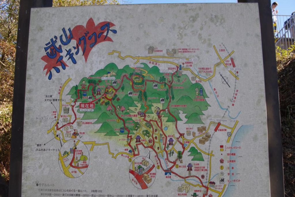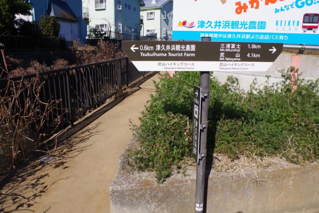 以下、武山or三浦富士の登山口最寄りである津久井浜駅からのアクセスをご紹介します。分岐のポイントには案内板も出ているので、基本的にそちらに従って進めばOKです。