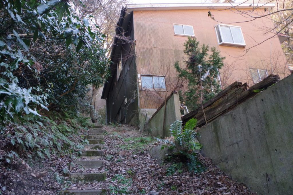 ⑤民家の脇に登山道の入り口です。