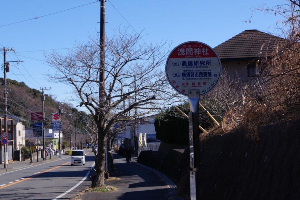 浅間神社の前にはYRP野比駅行きのバス停があるのですが、良い時間帯のものが無かったので歩いて向かうことに。一応、1時間に1本の運行はあるようでした。