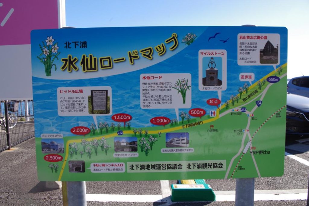 また、時期を選びますが、野比海岸の遊歩道はスイセンロードとしても有名で、1月下旬ごろにはスイセンの白くて凛々しい花々を愛でながら、散歩するのもお勧めです。