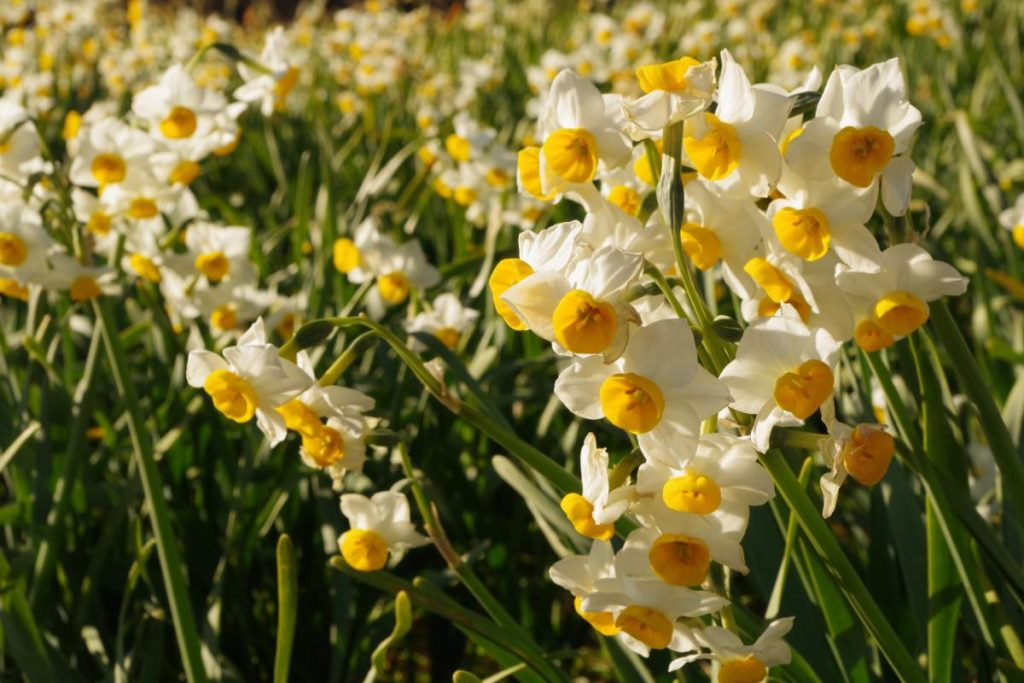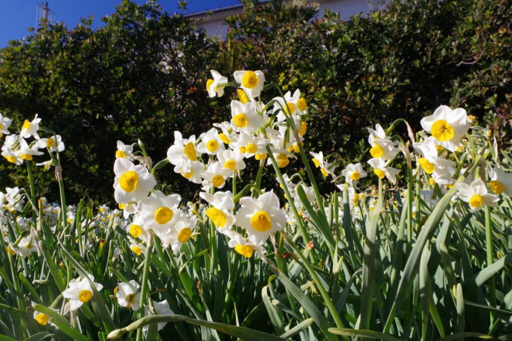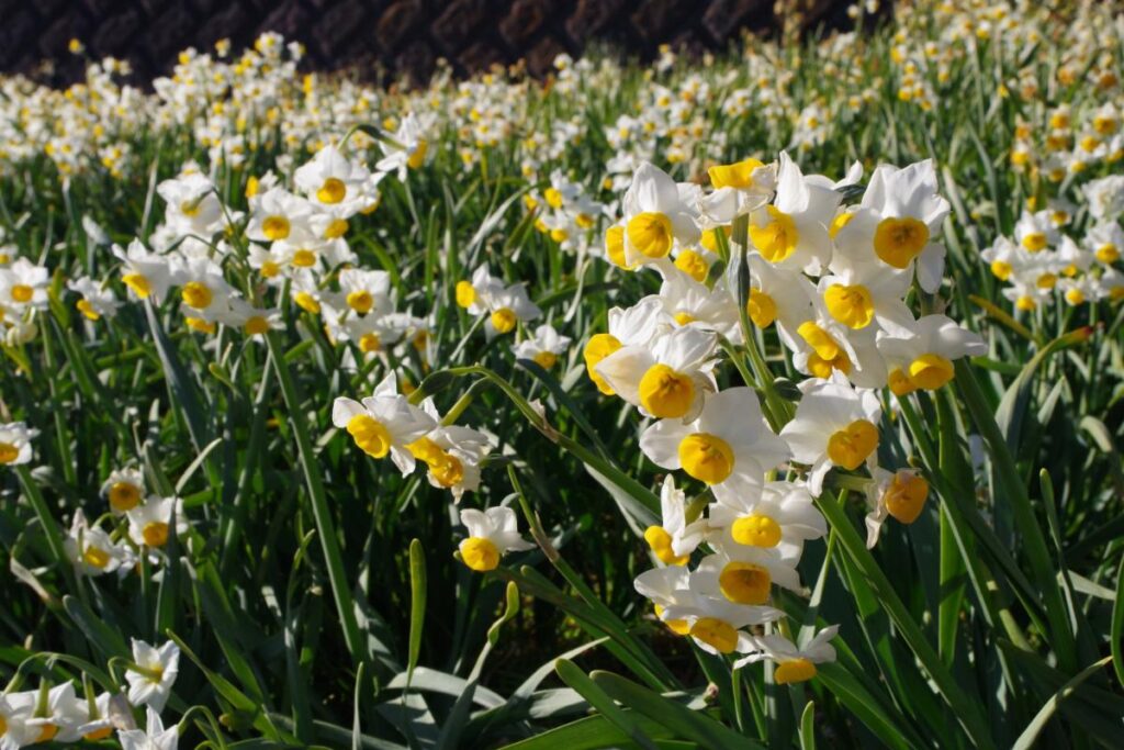 まずは遊歩道沿いに咲き乱れているスイセンの群生!