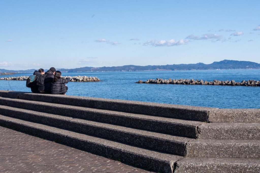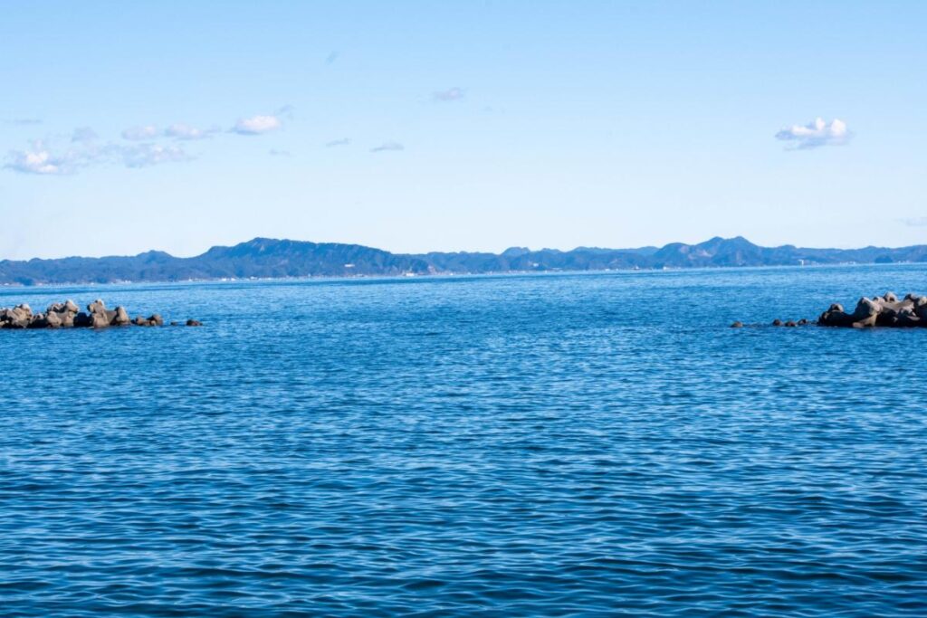 対岸の房総半島、三浦海岸から剣崎に続く海岸線を眺望できる絶好の“海映え”スポットとして話題を集めているポイントです。
