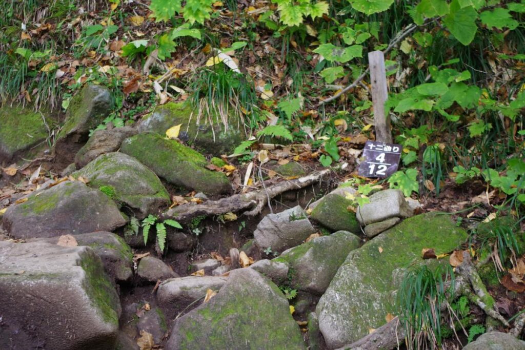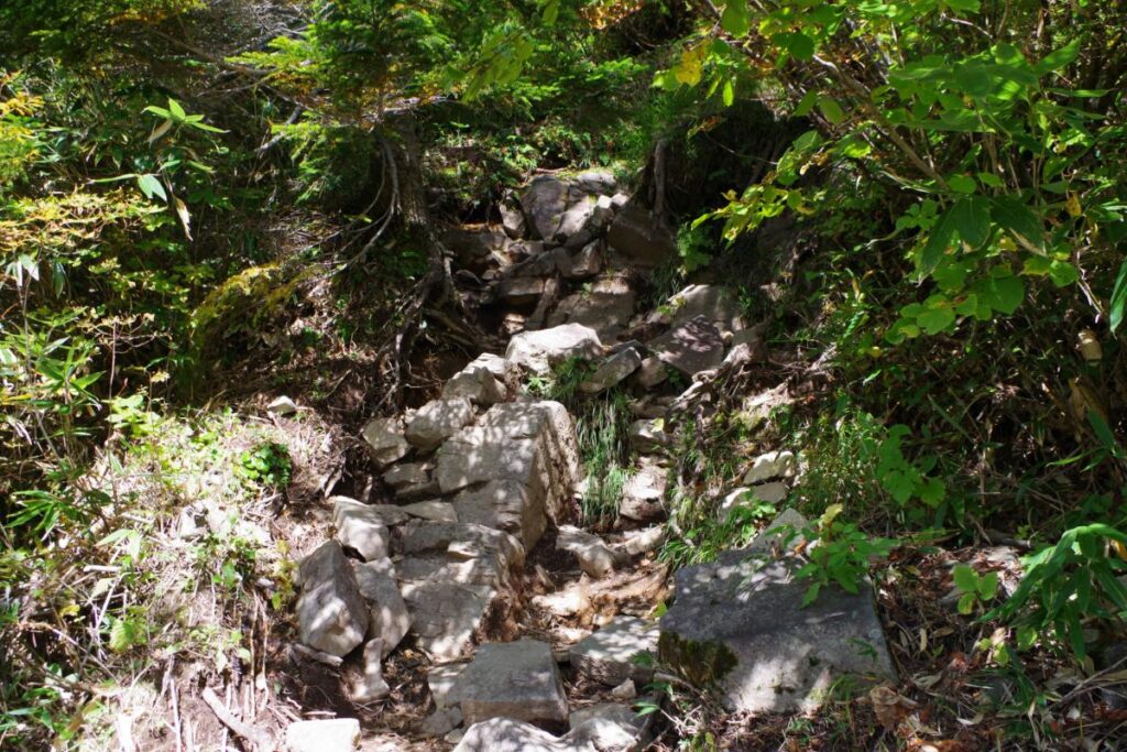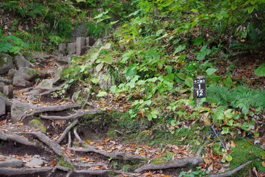 さて、十二曲がりを乗り越えたところですが、越えてからも険しい登山道が続いていきます。