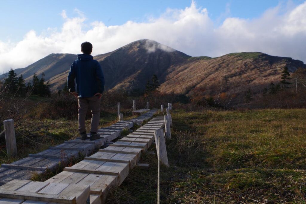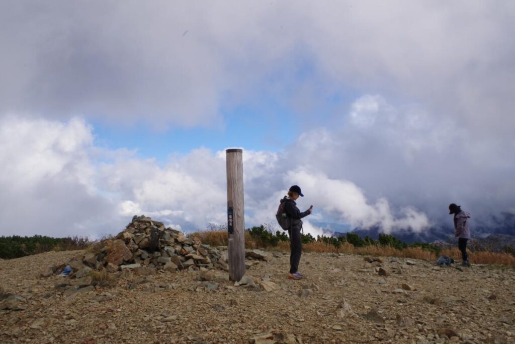 なお、日本百名山の一角と言うこともあり、登山者も多いです。前述のとおり登山道は明瞭に整備がなされており、道迷いの心配はほとんどないように感じました。