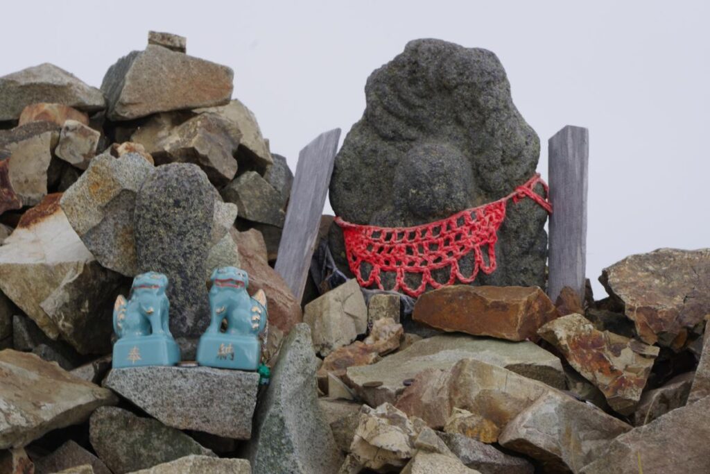 最後に山頂のケルンの中にポツンと置かれているお地蔵さんに挨拶をして、山頂を辞去させていただきました。