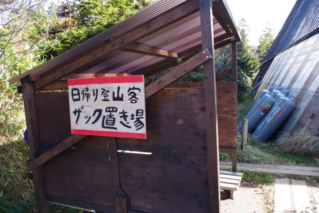 ヒュッテの前には日帰り登山者用のザック置き場もあったのですが、今回の私は久しぶりの山小屋泊なのだよ。ハッハッハ。