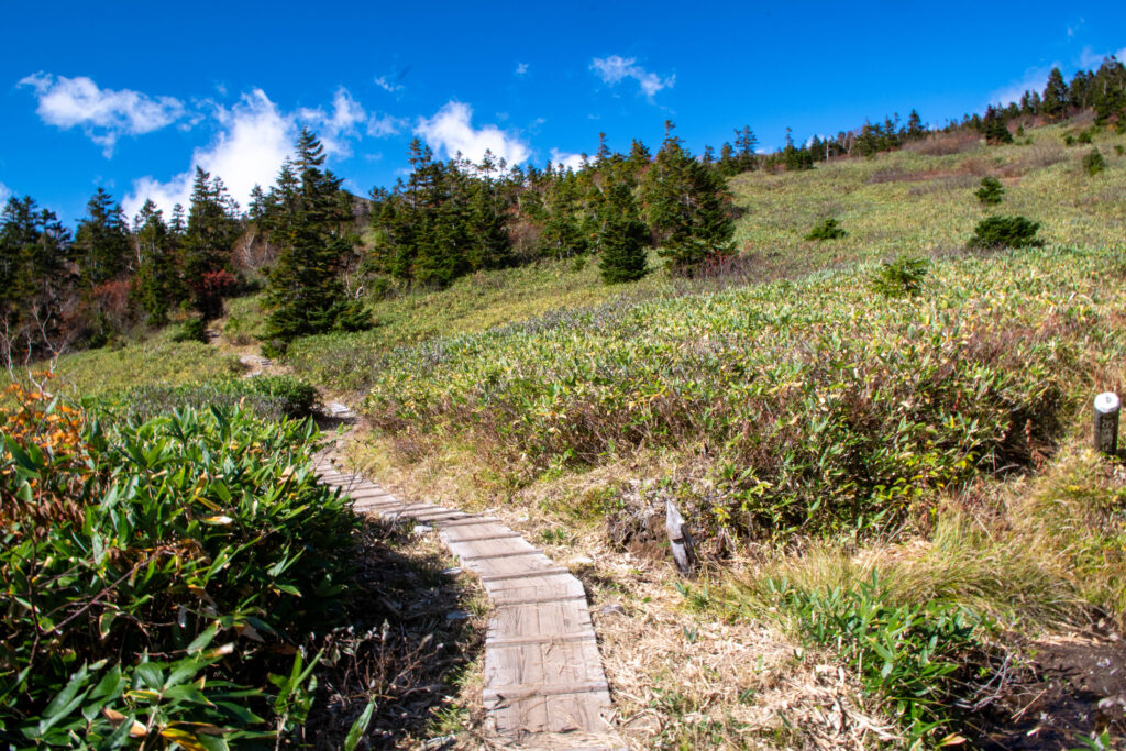 笹ヶ峰登山口から火打山山頂までの登山道については、とてもよく整備されています。登山道の多くが木道となっており、非常に歩きやすい登山道でした。また、鎖場も無く、危険と言えるポイントは皆無であると感じました。