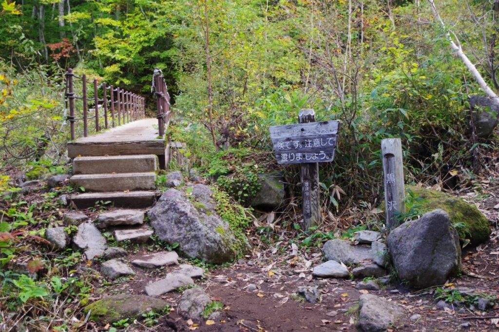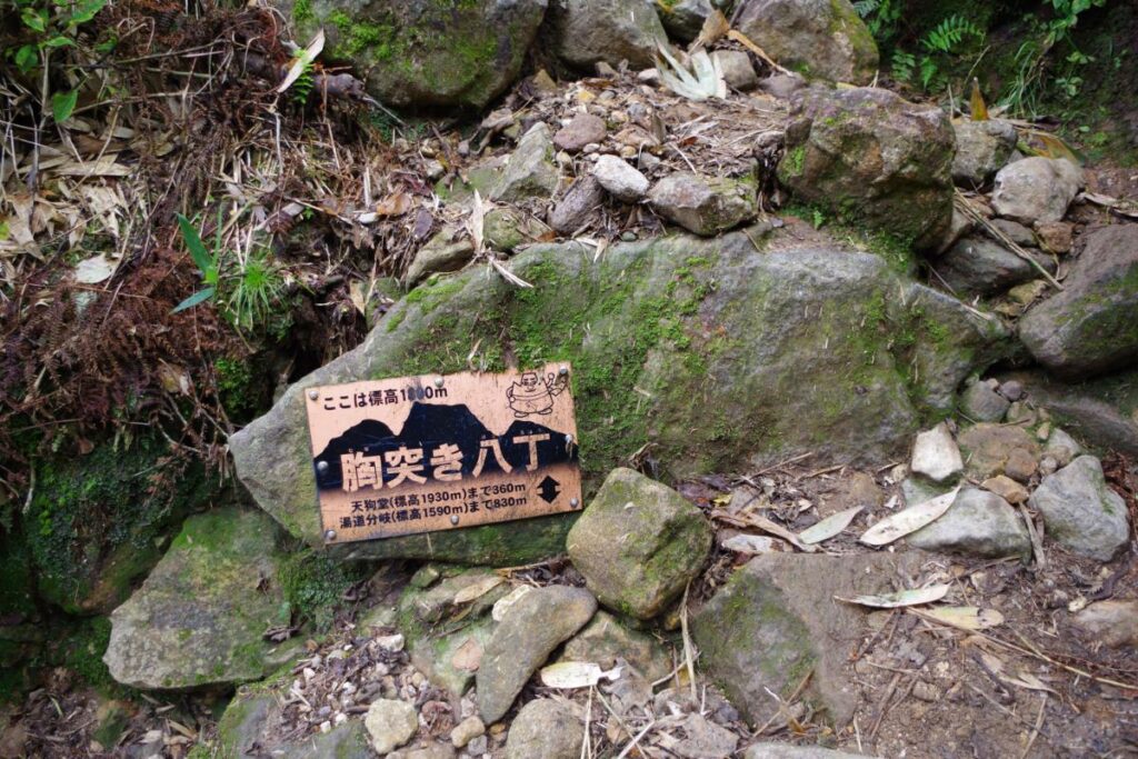 唯一、登山口から40分ほどでたどり着く黒沢というポイントから十二曲がりという急登がはじまります。また、十二曲がり直後からは、約一時間ほどの岩場の急登となり、そこが辛かったという印象です。