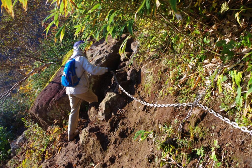 また、その後の長い長い鎖場も注意が必要なポイントです。こんなに長い鎖場はなかなかお目にかかれるものでは無いですね…。そのくらいのモノでした。