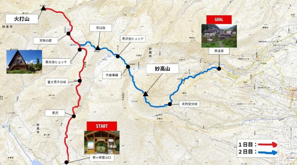 火打山・妙高山の縦走の詳細について