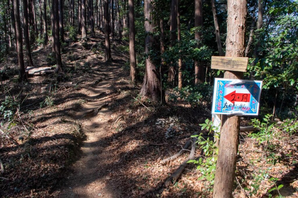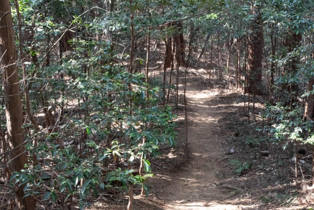 山頂からの梅林までのコースタイムは約55分(山中を35分、舗装道を20分)となっていますが、正直、道中は見どころが無かったため、一気にダイジェストでお届けします(*- -)(*_ _)ペコリ