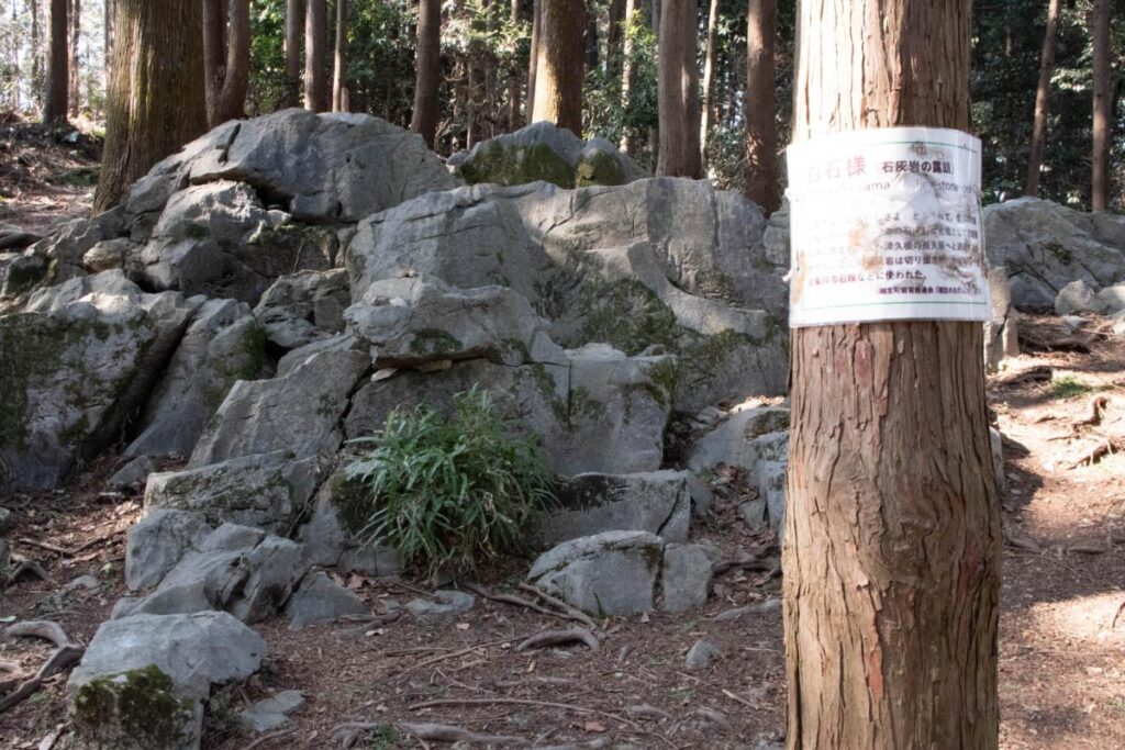 正直なところ『そんなに白くない…。』と思ってしまったのですが、白石様の正体は露出した石灰岩のようで、越生近辺の建築物の石材として使用されてきた歴史があるようです。