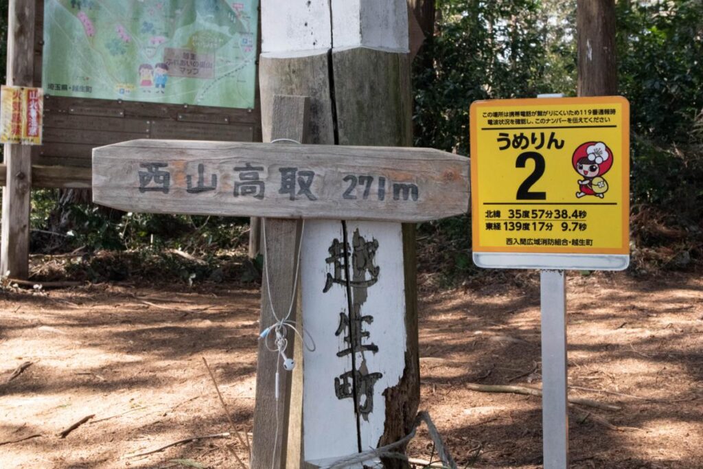 後々知ったのですが、越生10名山に選定されている山については、立派な標識が設置されています。