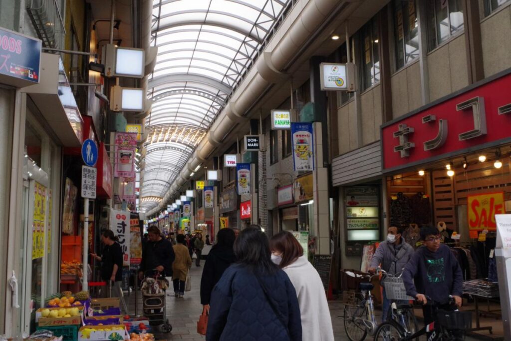 アーケードは全面屋根付きなので、雨の日でも気兼ねなく散策できるのは利点です。