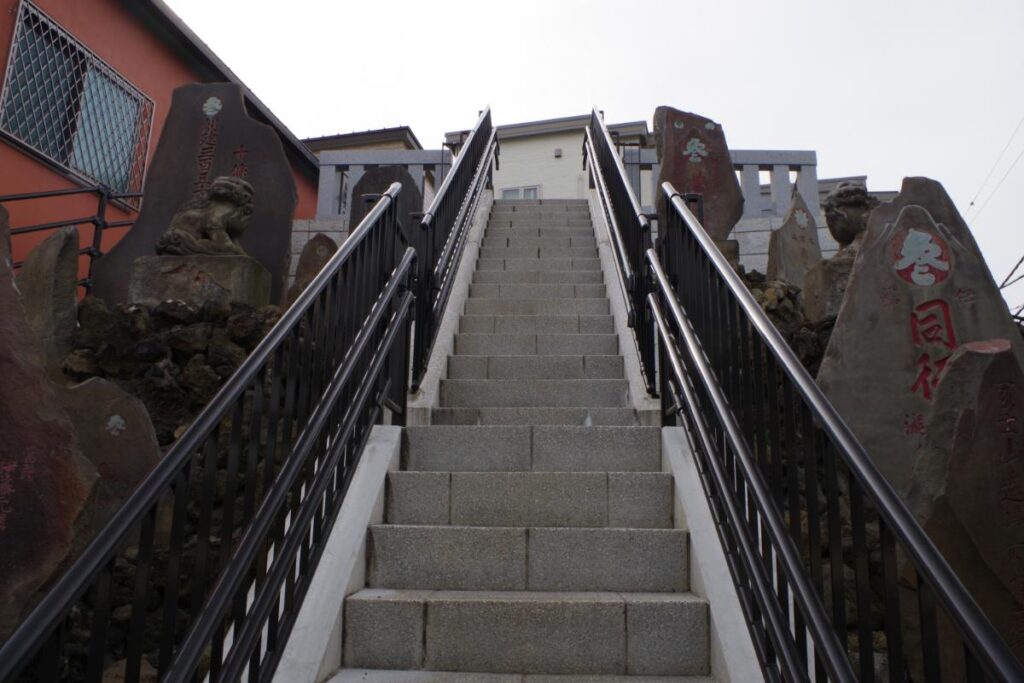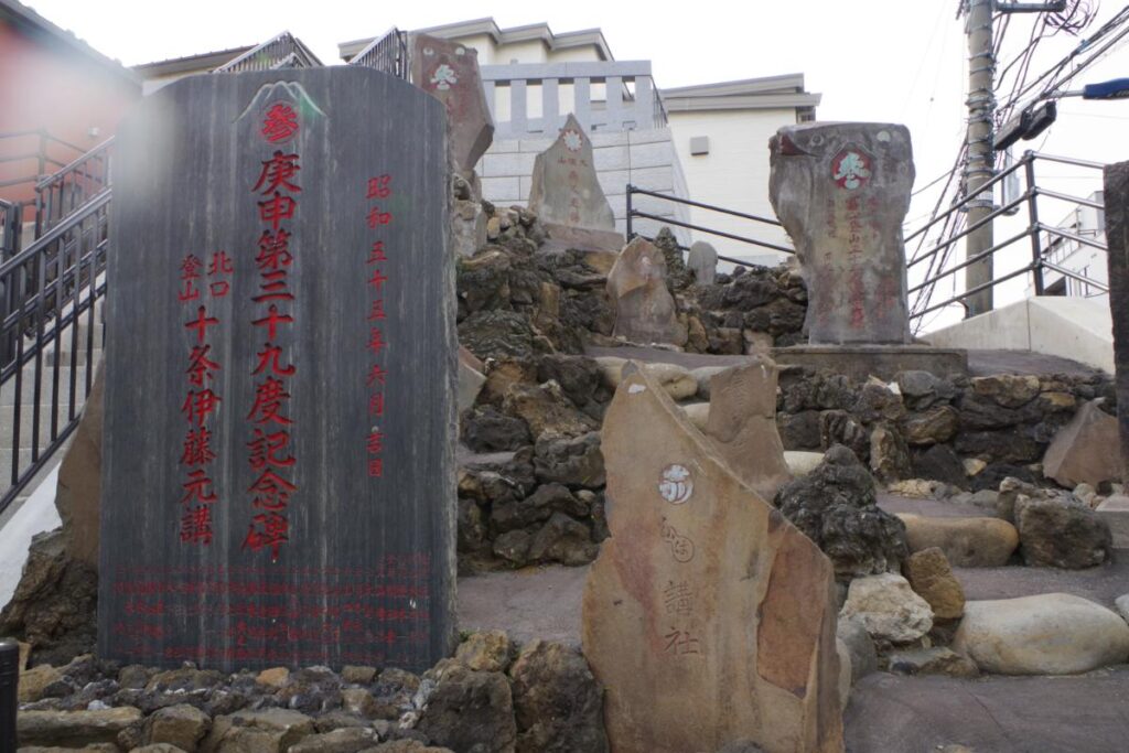 石段の両脇には古くからの石碑が林立し、歴史と威厳を感じることができます。