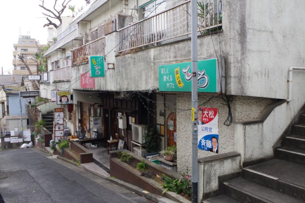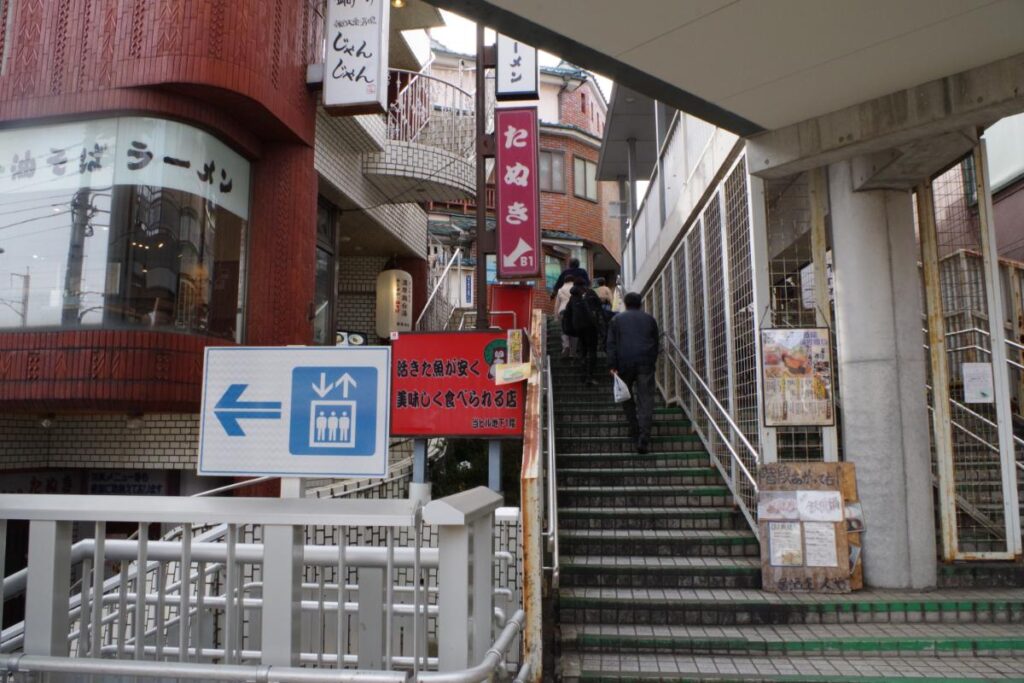 早速、北口(西側)から外へ出て、階段を登り、左手の方に進んでいくと、いきなりディープな路地通りがお出迎えしてくれます。