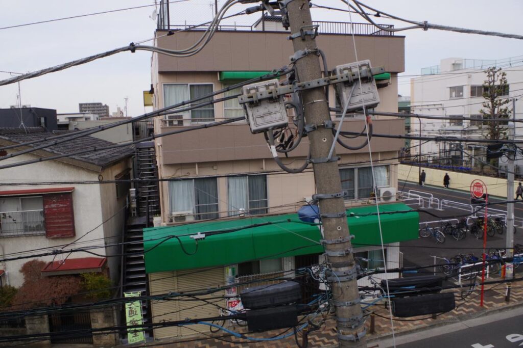 左手には、かなり傾いている電柱が設置されていることくらいでしょうか…。